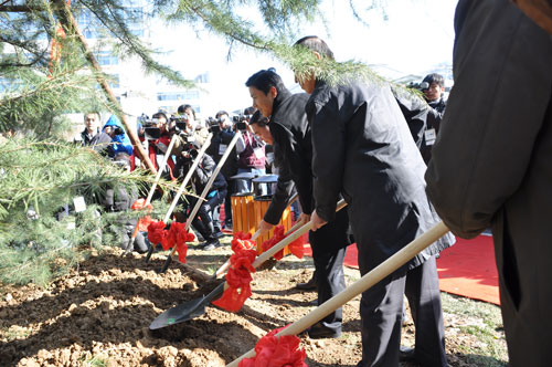 今天我們最親愛的網(wǎng)友們?yōu)榱吮磉_(dá)他們對百度的祝福,不遠(yuǎn)千里送來了代表神州大地五岳之土和長江、黃河之水。山東網(wǎng)友前往泰山取土,送來東岳之土;陜西網(wǎng)友前往華山取土,送來西岳之土;湖南網(wǎng)友前往衡山取土,送來南岳之土;山西網(wǎng)友前往橫山取土,取來北岳之土;河南網(wǎng)友前往嵩山取土,取來南岳之土;網(wǎng)友前往南京長江大橋,送來長江之水;山西網(wǎng)友前往黃河虎口瀑布取來黃河之水。下面讓我們掌聲有請北京市委常委、海淀區(qū)位書記趙鳳桐先生;山西省省委常委、統(tǒng)戰(zhàn)部部長李政文先生;山西省政協(xié)副主席衛(wèi)小春先生;我們的董事長兼首席運(yùn)營官、執(zhí)行官李彥宏先生;首席財務(wù)官杰尼;技術(shù)首席執(zhí)行官李一男;副總裁任旭陽一起前往植樹區(qū)進(jìn)行植樹環(huán)節(jié)。有請。