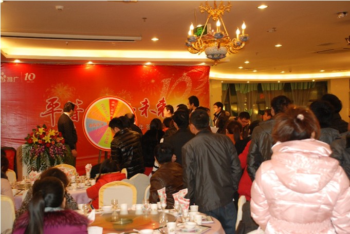 2011年12月16日,天氣比較寒冷,但是這并沒有擋住客戶熱情的腳步。在全體同仁的精心準備下,“平等成就 未來—百度推廣十周年客戶答謝會”鹽城站會議隆慶舉行。福地皇宮大酒店福地廳其樂融融、客戶高朋滿座,我們以精彩紛呈的節(jié)目,一輪又一輪的新穎抽獎形式,吸引了眾多客戶的參與。